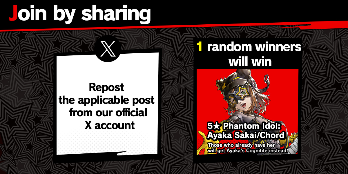 In your Post, include the video URL, a short description of the video, and the hashtag #P5XCreators to enter.Winners will be selected randomly to receive 5★
